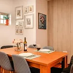 In der Casa Da Valentina haben Gäste Zugang zu einer voll ausgestatteten Küchenzeile mit einer Mikrowelle, einem Kühlschrank und Glasgeschirr.